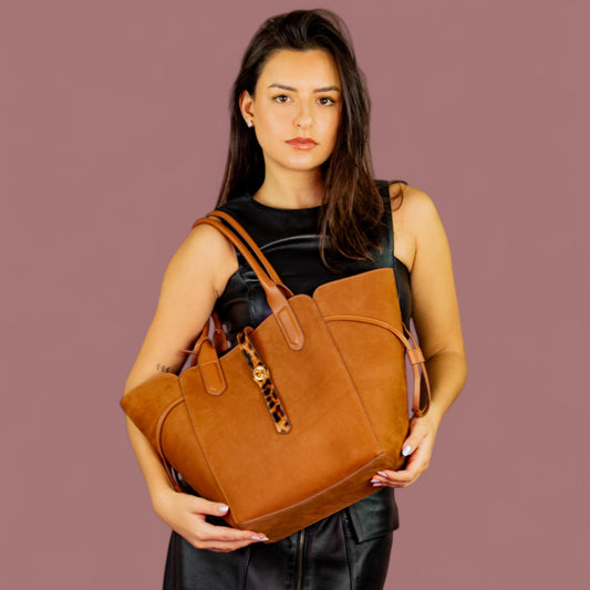 Bolsa Shopping Melania Couro Legítimo Caramelo Com Tira de Onça Patrícia Maranhão