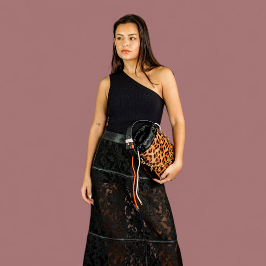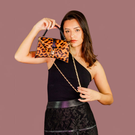 Bolsa Mini Tiracolo Fancy Couro Legítimo Animal Print Onça Patrícia Maranhão