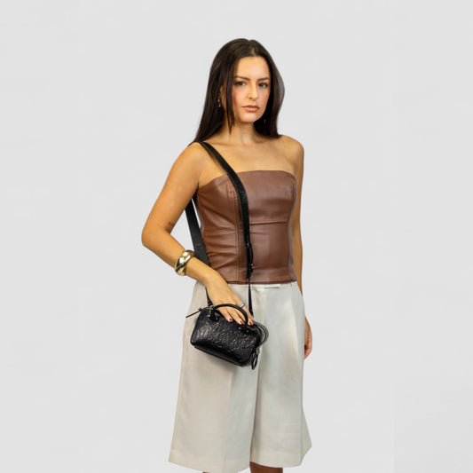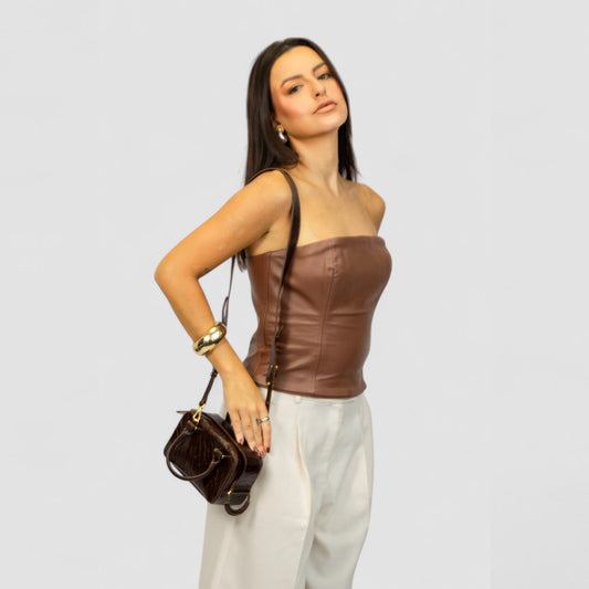 Bolsa Mini Tiracolo Gisele Couro Legítimo Marrom Patrícia Maranhão