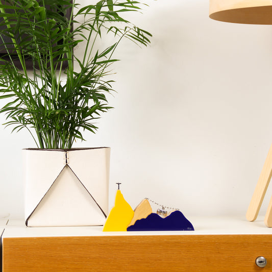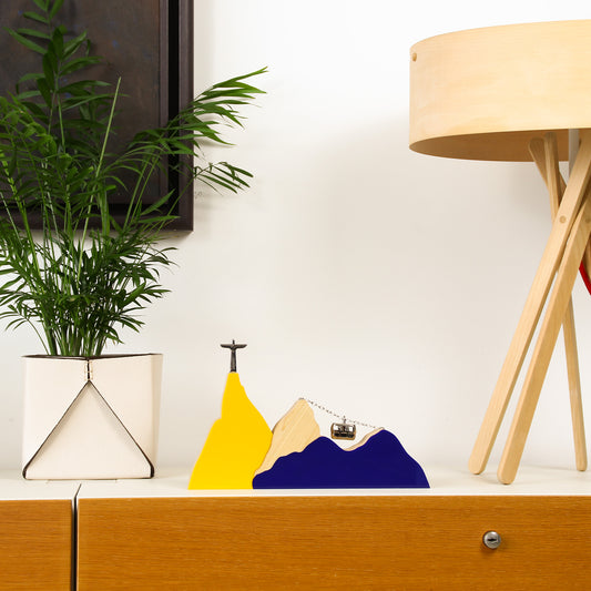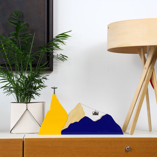 Escultura de Madeira Rio Paisagem Lux Amarelo e Azul Mini Patricia Maranhão