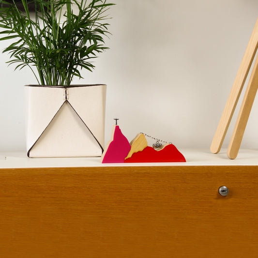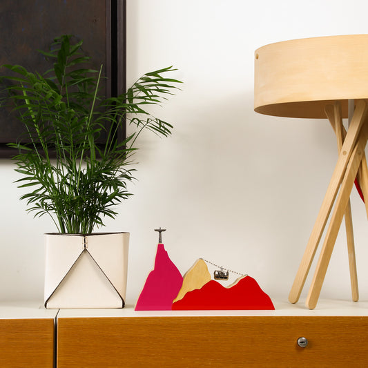 Escultura de Madeira Rio Paisagem Lux Pink e Vermelho Mini Patricia Maranhão