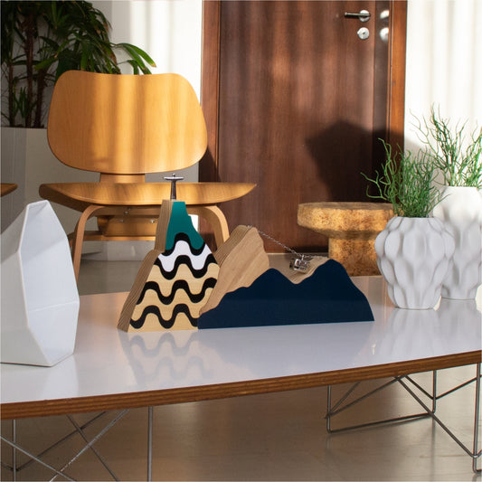 Escultura de Madeira Rio Paisagem Cubista Azul G Patricia Maranhão