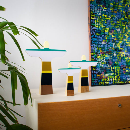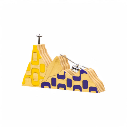 Escultura de Madeira Rio Paisagem Ipanema Trip Amarelo e Azul Mini Patricia Maranhão
