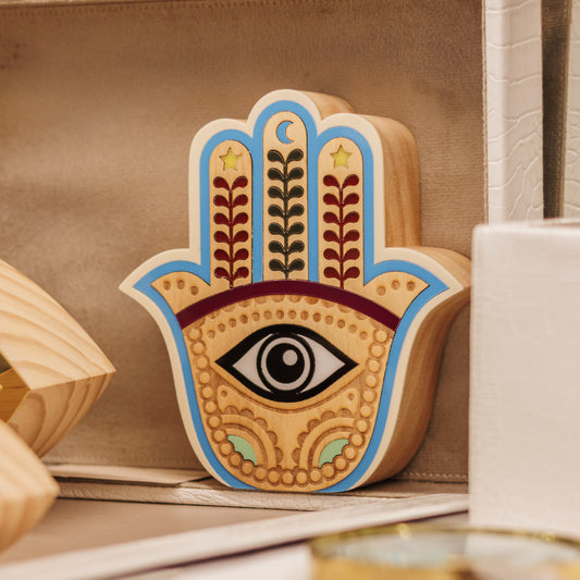 Escultura de Madeira Mão de Fátima Hamsá Patricia Maranhão