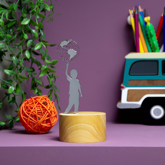 Escultura em Aço Bibelox Menino Mundo Patricia Maranhão