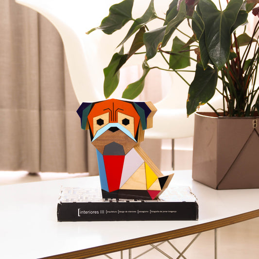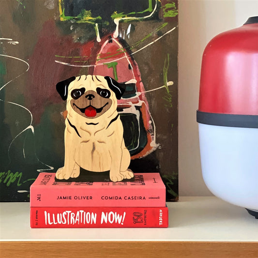 Escultura de Madeira Geo Cachorro Pug Patrícia Maranhão