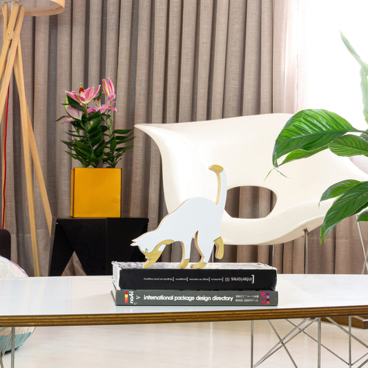 Escultura de Madeira Gato Curioso Mini Branco Patricia Maranhão
