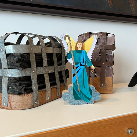 Wooden Sculpture Archangel Raphael Sacred Patricia Maranhão