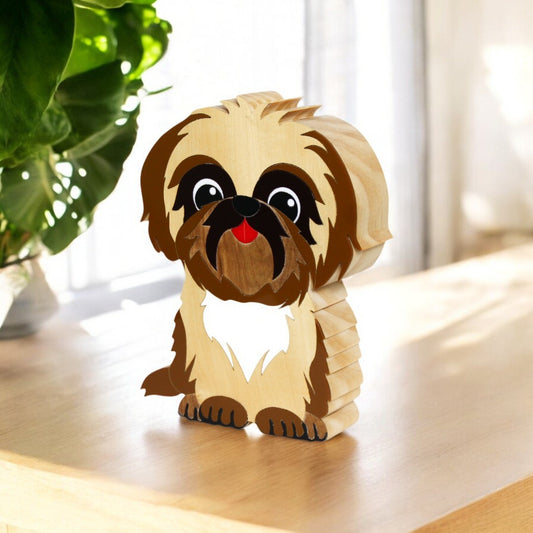 Wooden Sculpture Caramel Shih-Tzu Dog Patricia Maranhão