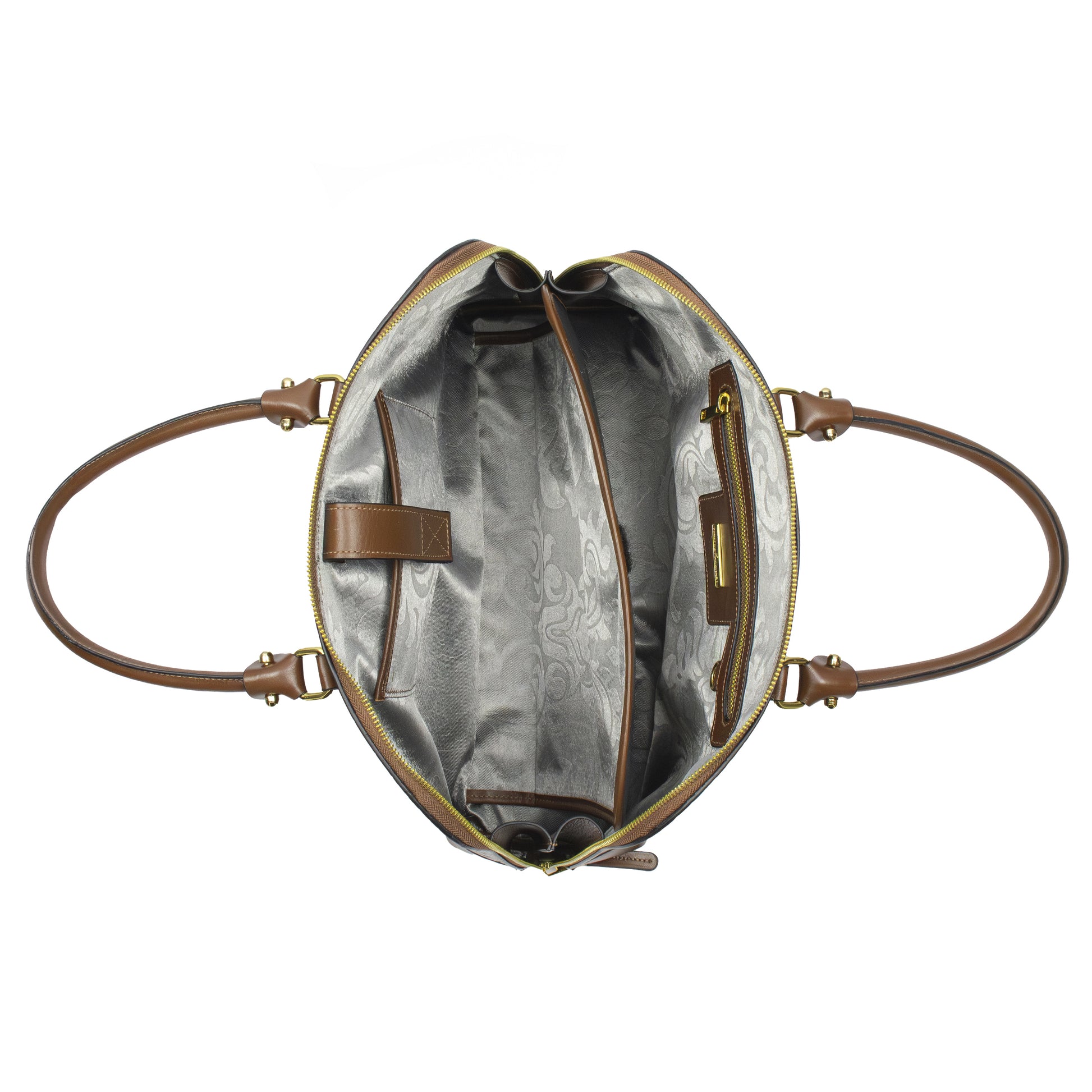 Design que se abre para a sua rotina. Sua ampla abertura e o forro claro garantem que nada se perca, transformando a praticidade em um ato de elegância.